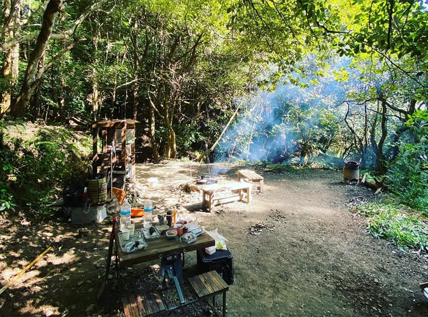 山の空気、葉音、清流のせせらぎ。自然の音に包まれながら焚き火を囲み、「何もしない」贅沢を味わえる場所です。